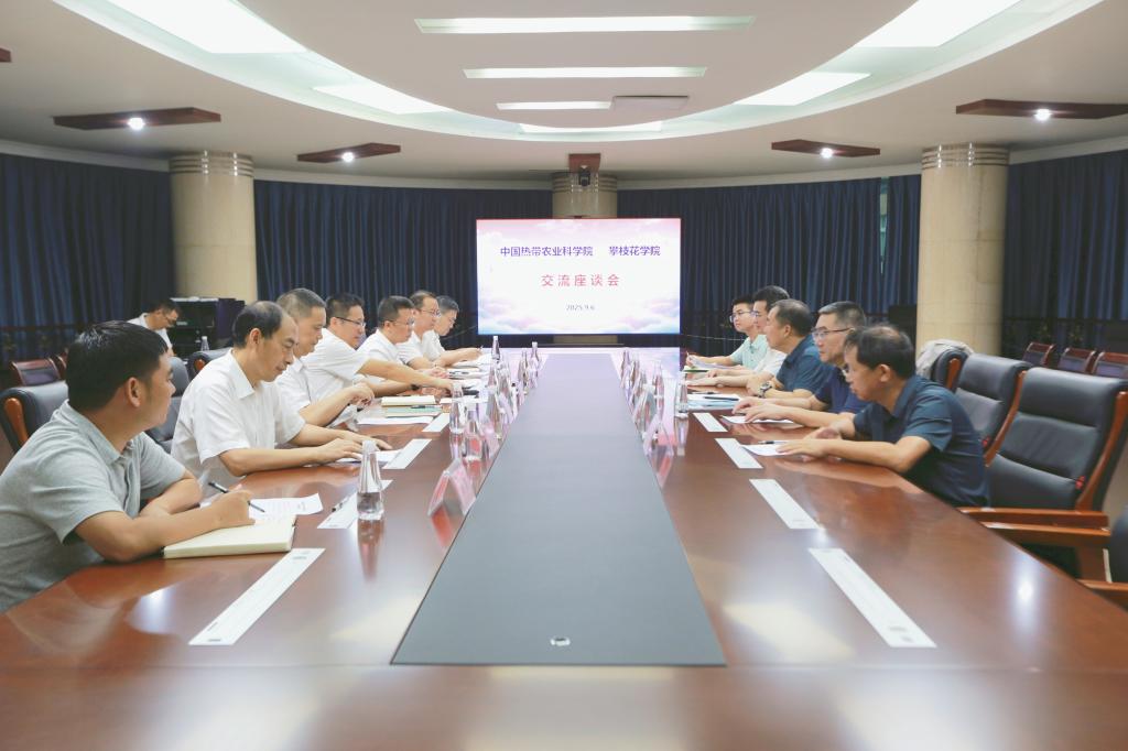 中国热科院办公室、南亚所及其攀枝花基地管理处相关负责人,学校科研处、研究生处、招就处、生化学院相关负责人参加交流座谈。