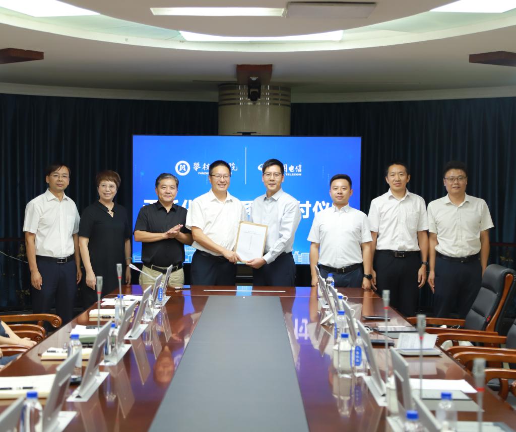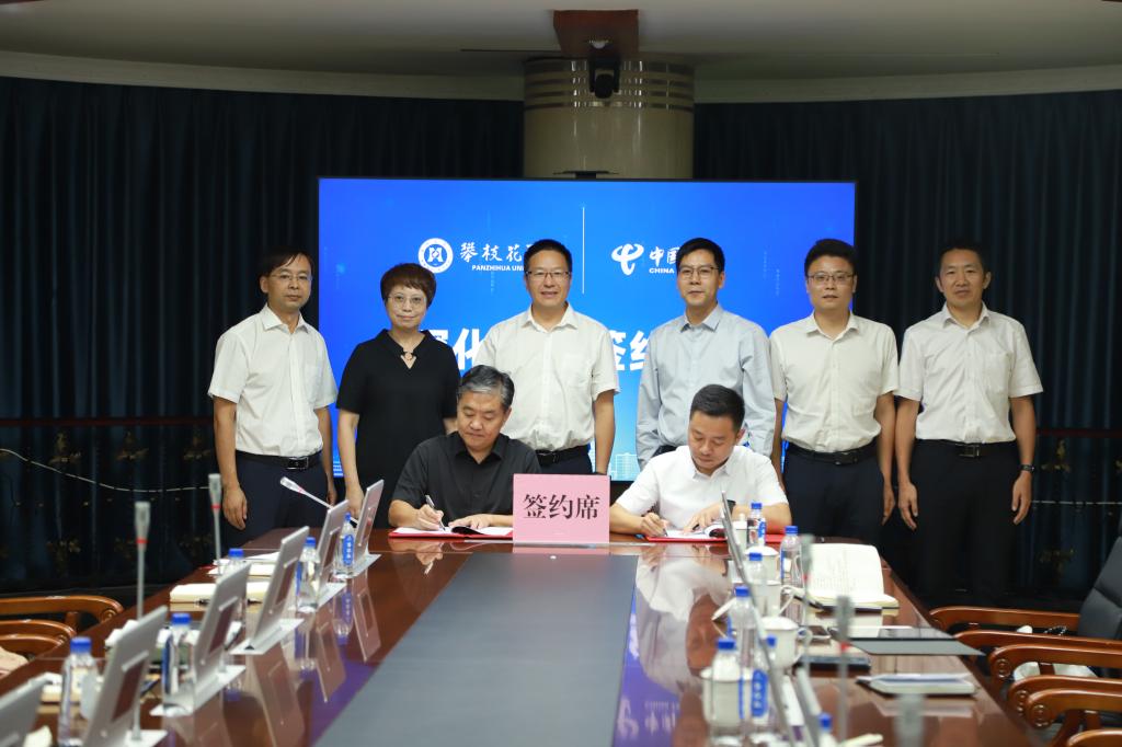 9月8日,我校与中国电信股份有限公司攀枝花分公司在弘毅楼300室举行深化合作协议签约仪式暨无纸化办公系统交付仪式。中国电信攀枝花分公司党委书记、总经理张全民(主持工作),攀枝花电信公司副总经理王垦,学校党委副书记、校长李兴贵,副校长王兵出席签约仪式。