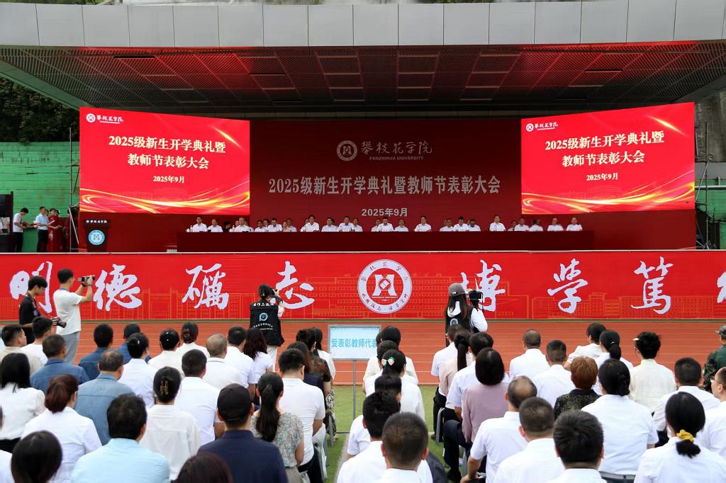 丹心育桃李,青春书华章。9月10日上午,我校在南苑运动场隆重举行2025级新生开学典礼暨教师节表彰大会,喜迎来自全国31个省(市、自治区)的3978名本科生、177名硕士研究生,共同庆祝第41个教师节。全体校领导出席会议,会议由副校长朱云生主持。