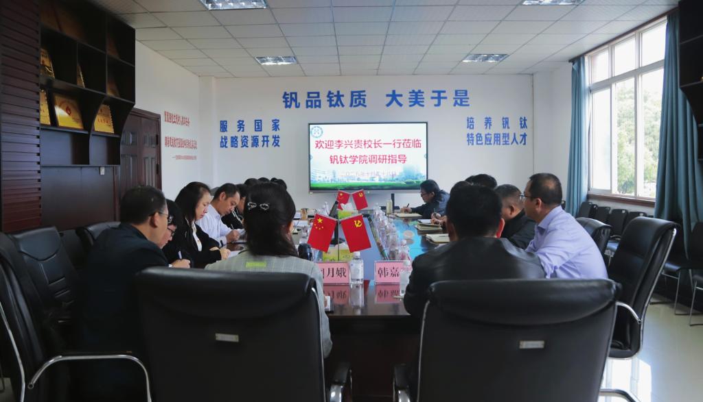 1028日上午,学校党委副书记、校长李兴贵到钒钛学院开展专题调研,党政办、人事处、教务处、科研处、研究生处相关负责人陪同调研。学院党政领导班子、科级干部及省级科研平台负责人参加会议。