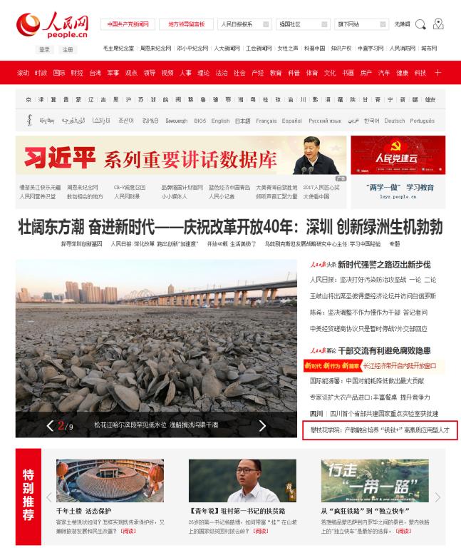 5月22日,人民网首页以《坚持产教融合办大学,培养“钒钛+”高素质应用型人才》为题,报道了我校的办学特色和成效。具体内容点击网址: