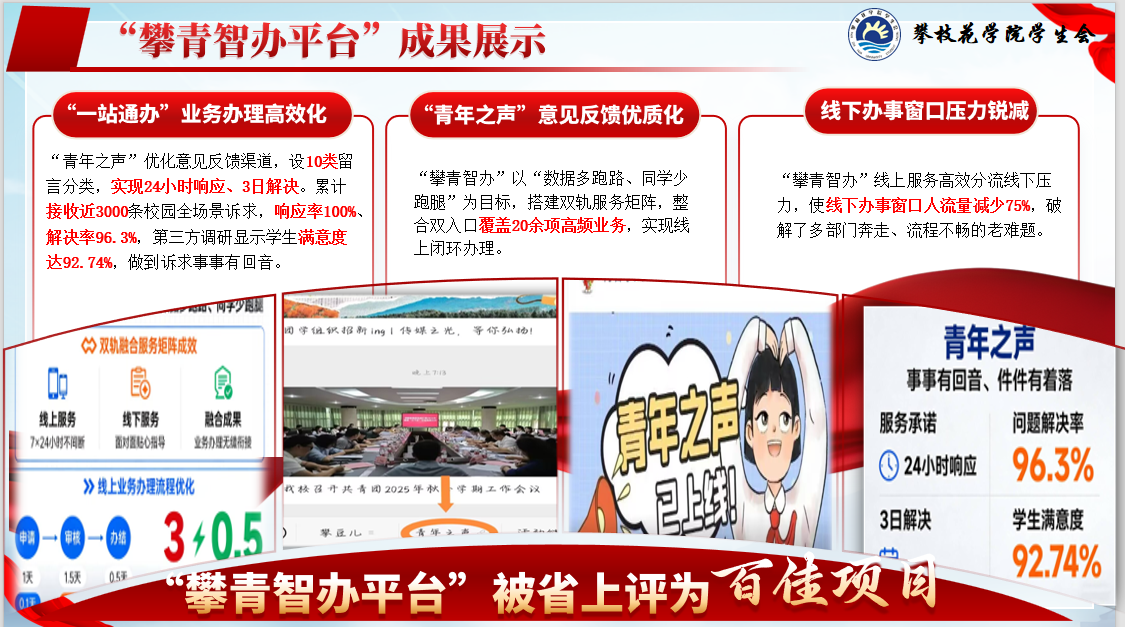 我校“依托‘攀青智办’平台打造综合服务与思政育人体系”获四川省学校学生会组织“我为同学做实事”百佳项目